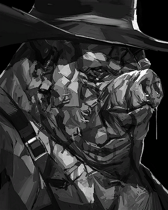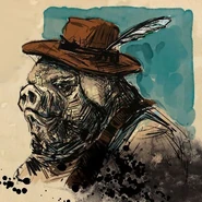 Pigman Joe is a minor character in Weird West and an ally of Cl'erns Qui'g. He's an accomplished painter and a poet who is cursed and has to speak in rhyme. He's the author and illustrator of the book Pigman Joe's Tour du Weird West, which recounts his journey across the West.